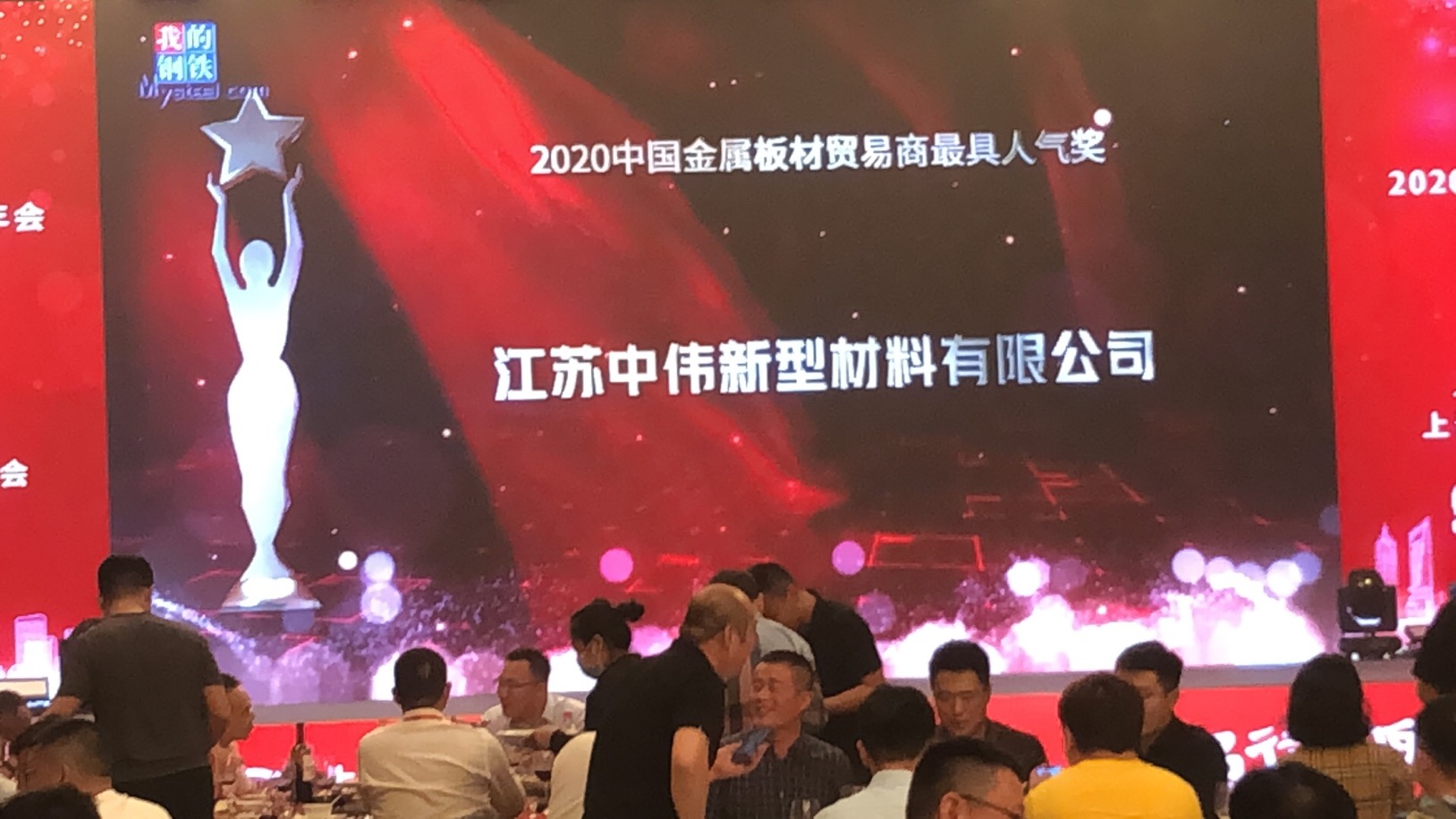 很榮幸在此次"2020(第十四屆)中國金屬板材產(chǎn)業(yè)鏈年會"上,我公司獲得"2020中國金屬板材貿(mào)易商最具人氣獎(jiǎng)”的榮譽(yù)!首先,感謝上海鋼聯(lián)對江蘇中偉新型材料有限公司的認(rèn)可,也是大家對我們過去一時(shí)期的工作肯定和鼓勵(lì)。
